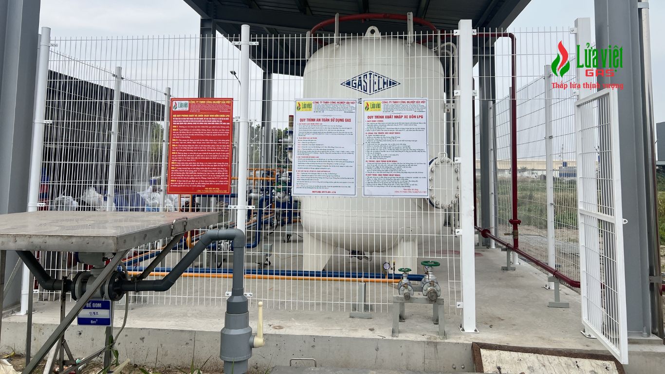 • 02 trạm bồn gas công nghiệp dung tích 3.5 tấn, được lắp đặt tại khu vực kỹ thuật riêng biệt, đảm bảo các quy chuẩn về an toàn với tường rào bảo vệ, biển cảnh báo và lối thoát hiểm khẩn cấp.