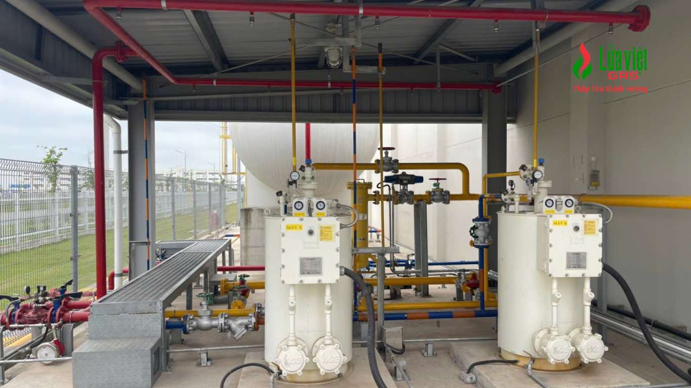 Giải pháp: Sử dụng máy hóa hơi nhập khẩu và bộ điều áp điện tử kiểm soát áp suất chính xác đến ±0.02 bar. Hệ thống được phân tải đều và chia nhỏ đường ống dẫn đến từng cụm dây chuyền, đảm bảo nhiệt độ đồng nhất.